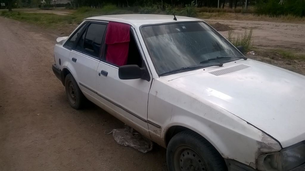 Escort, de color blanco, modelo viejo.