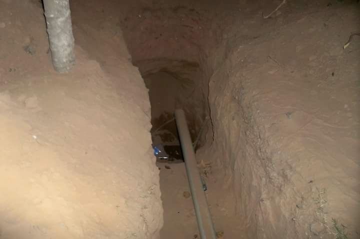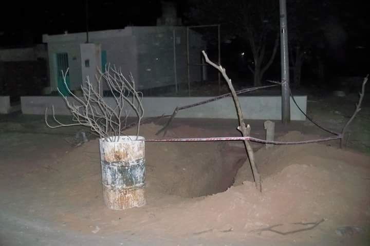 dentro de la zanja destinada a la instalación de las cloacas de la posta sanitaria.