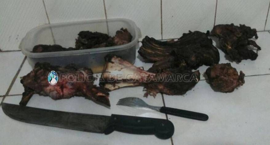Esta persona, sería el propietario del animal y al observar la situación de inmediato dio aviso al personal policial que se constituyó rápidamente en el lugar y durante la requisa correspondiente encontró en el interior de mochilas pertenecientes a estas personas carne asada y huesos del animal, como así también una cuchilla con cabo de color negro, que quedaron en calidad de secuestro.