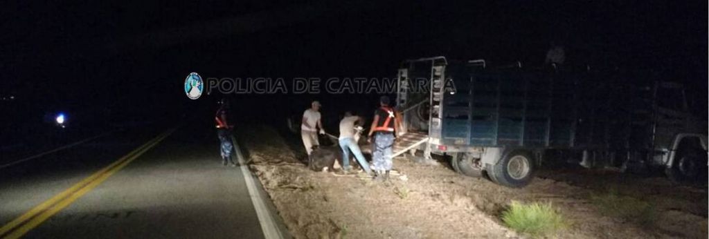 Hoy, a las 18, personal de la División Policía Montada recorrió la ruta nacional Nº 38 en inmediaciones de la entrada de la localidad de Santa Cruz, Valle Viejo, procedieron al secuestro de tres animales vacunos un toro de pelaje castaño; una tambera mocha de pelaje vaya y una tambera mocha de pelaje barrosa pampa, en cumplimiento a lo normado por la Ley Nº 4851/95.