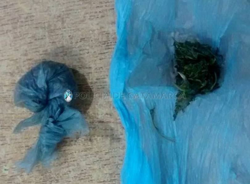 Al practicarles la requisa correspondiente, el personal policial interviniente encontró entre las prendas de vestir de uno de ellos, dos envoltorios de nylon conteniendo Marihuana.