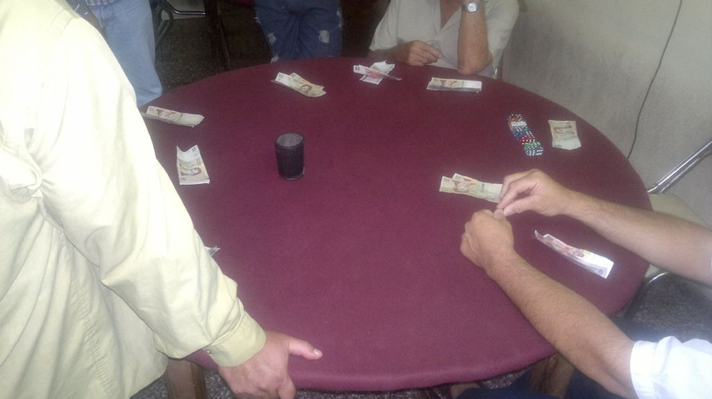 vaso cubilete de color marrón y dos dados de color blanco, y durante el