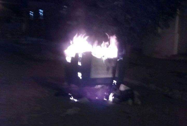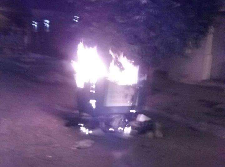 Recreo © En la madrugada de este martes, cerca de las 4 horas, desconocidos prendieron fuego a una contenedor de basura, ubicado frente un supermercado de la ciudad de Recreo, en el departamento La Paz.