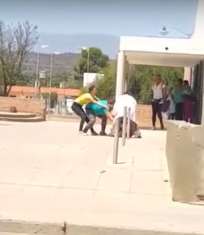 Las imágenes (video publicado en la cuenta de You Tube El Esquiú) muestran cómo la mujer, en un ataque de furia y sin importar el daño que estaba causando, pretendía agarrar por la fuerza al niño que estaba tirado en el piso.