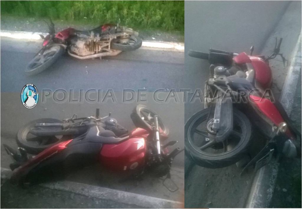 En el lugar, una motocicleta honda CG Titán 150 cc., (979-KVK), de color rojo, al mando de Jesús Damián Rivero (20), por razones que se tratan de establecer perdió el control del rodado y cayó a la calzada.
