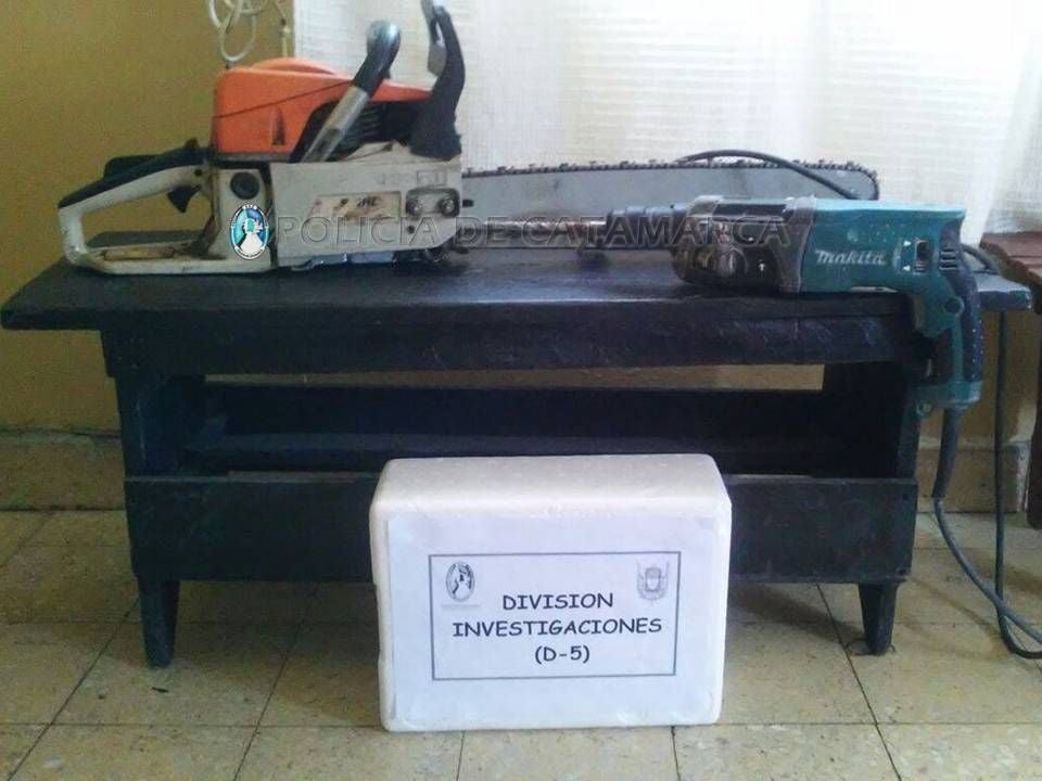 En una vivienda ubicada en el Barrio Valle Chico, propiedad de la familia Luque, los investigadores incautaron un taladro marca Makita y una motosierra Stihl, que habían sido denunciadas en la Unidad Judicial Nº 1, por un hombre de 41 años en el día de ayer, en virtud de haber sufrido la sustracción de los mismos de una obra en construcción ubicada en la calle San Martín, inmediaciones a la intersección con calle Salta.