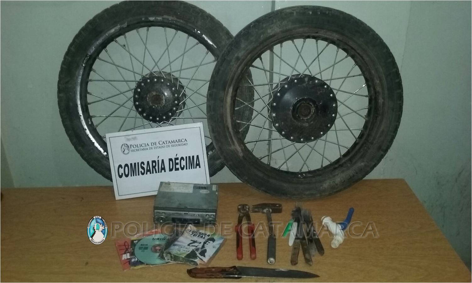 y lograron secuestrar dos ruedas armadas de motocicleta rodado 17, un estéreo