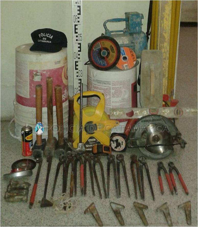 de agua, once tenazas, cuatro mazas, una cierra circular, un compresor, varios