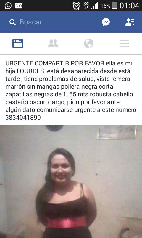 por sus familiares. La joven de 15 años desapareció en la tarde de este lunes.