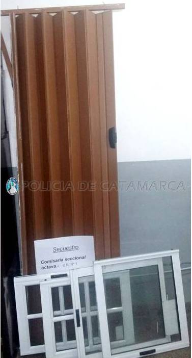 policías cuando transportaban una puerta corrediza, de color marrón y cuatro ventiluz