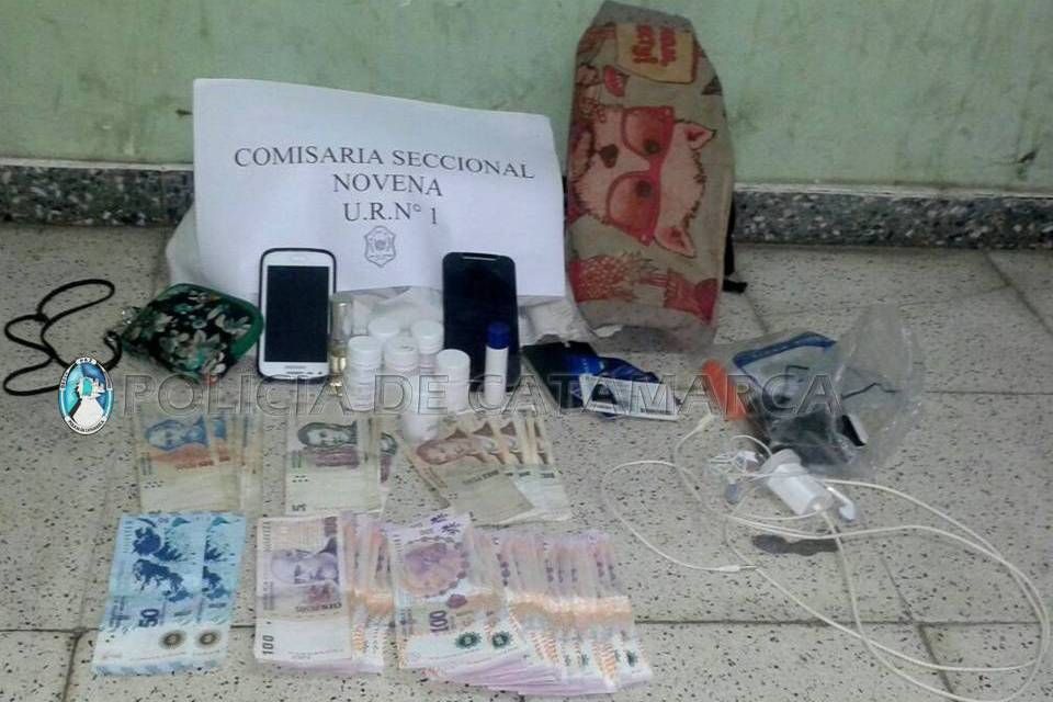 Al requisarlo, entre sus pertenecías tenía la cartera, que contenía en su interior $5.268, un celular marca Motorola, de color negro, un celular Samsung, un cargador de celular, un par de auriculares, varios frascos de medicamentos y documentación varia.