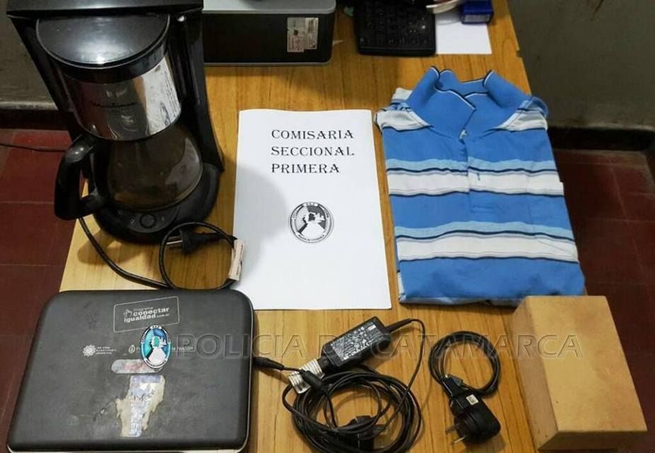 El adolescente al ser identificado en la vía pública, trasladaba en una bolsa, 1 notebook del programa Conectar Igualdad, 2 cables cargadores, 1 cafetera, 1 remera de color azul y blanco; todos de dudosa procedencia.