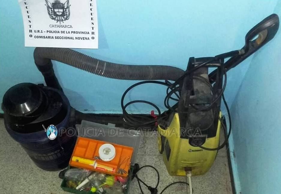 El niño fue interceptado en inmediaciones a un descampado del barrio 40 viviendas Sur, mientras trasladaba 1 aspiradora, 1 hidrolavadora y una caja con herramientas.