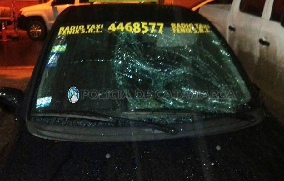 color negro, taxi, el cual luego del impacto, se dio a la fuga, dejando al