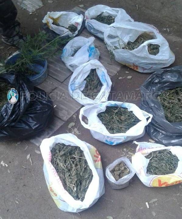 Sin embargo, en el interior de la vivienda, propiedad de la familia Nolano, la policía encontró diez bolsas de nylon que contenían hojas, tallos, flores secas sin compactar y un plantín de Marihuana.