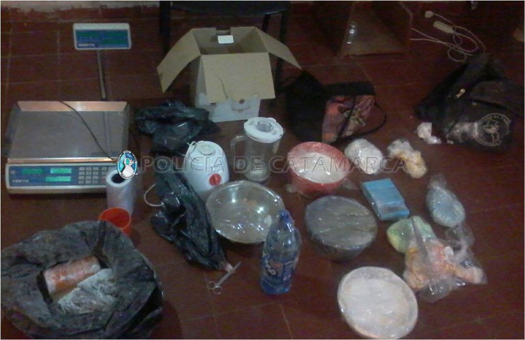 Del lugar secuestraron, siete kilogramos de Cocaína, dos balanzas una digital y otra de precisión, cuatro teléfonos celulares, una licuadora, varias pastillas, elementos de corte, almidones y dinero en efectivo.