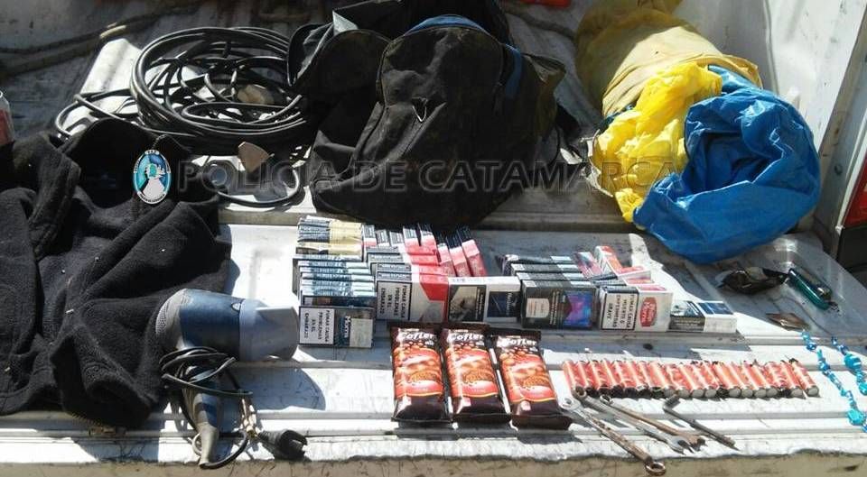 Más tarde, personal de la Comisaría Quinta junto a sumariantes de la Unidad Judicial Nº5, realizaron una serie de rastrillajes por la zona del ilícito, logrando el secuestro de un bolso de color negro, que contenía en su interior 36 paquetes de cigarrillos, 19 pilas, 1 secador de pelo, varias herramientas, 3 barras de chocolates, un chaleco polar de color negro, un alargador de corriente, un rollo de lienzo ecológico de color azul y amarillo, y 2 encendedores.