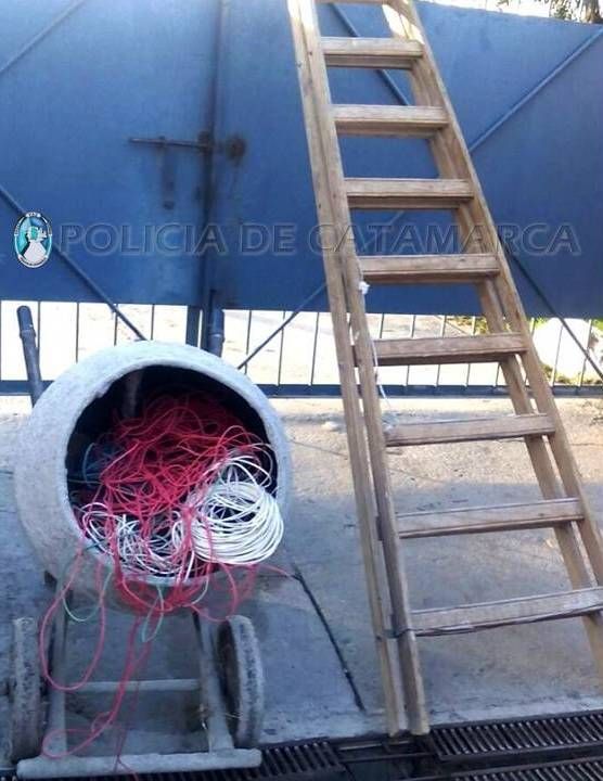 Al notar la presencia policial, emprendieron la fuga dejando abandonado en el lugar una máquina hormigonera, varios rollos de cables y una escalera de madera.