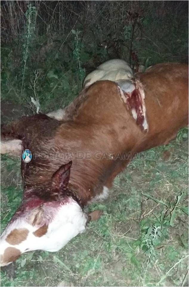 mientras faenando un animal vacuno a un costado de la ruta provincial Nº7. Al