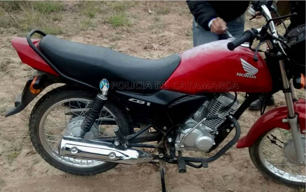 una motocicleta Honda CV1, (208-KEU), de color rojo, del interior de su