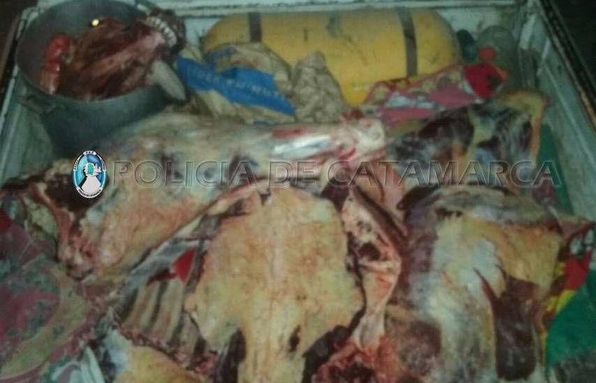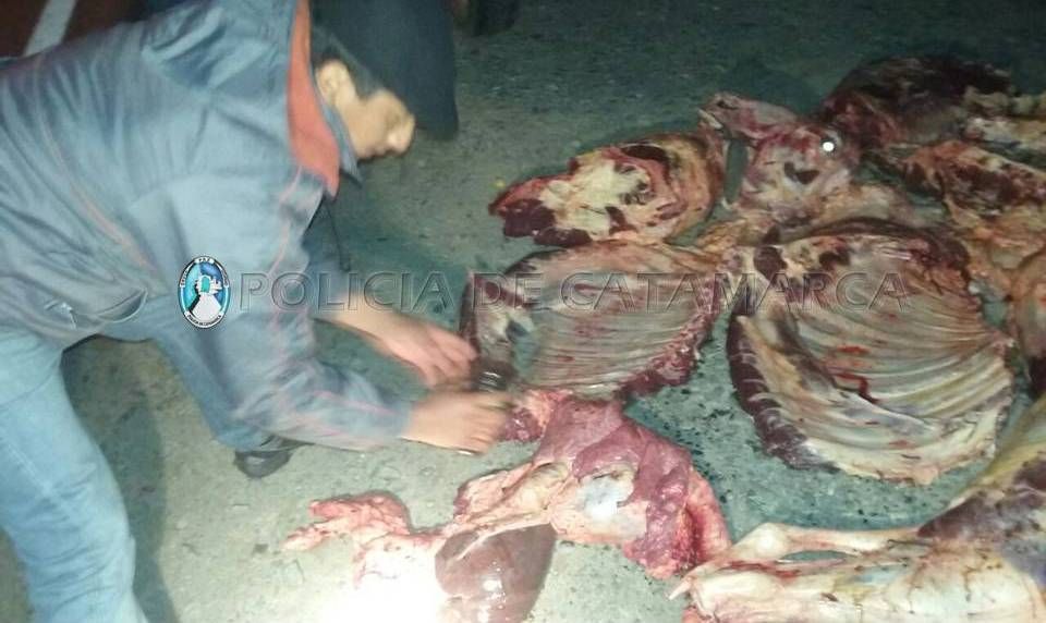 El procedimiento se realizó en un control vehicular de rutina, donde los policías interceptaron una camioneta Peugeot 504, dominio K009751, de color blanco, conducida por una persona de apellido Oliva (59), que trasladaba en la caja del rodado un animal completo faenado, de aproximadamente 200 Kg.