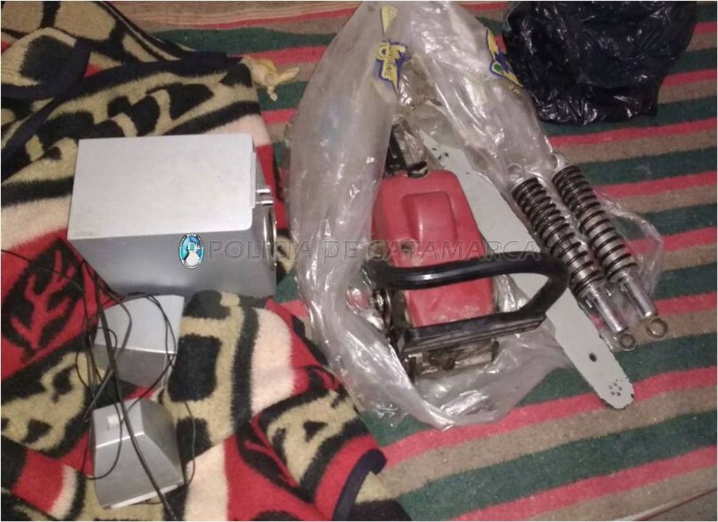 Hoy a las 19, efectivos de la División Investigaciones materializaron un registro domiciliario en una vivienda del barrio San Antonio Sur, por disposición de la Fiscalía de Instrucción N°7, donde secuestraron cinco pares de zapatillas marca Topper, tres parlantes, una notebook, dos amortiguadores y una motosierra marca BMJ 620.