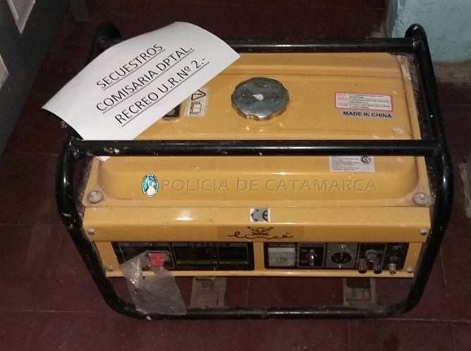Al practicarle la requisa correspondiente al rodado, lograron encontrar un grupo electrógeno marca Lince, de color amarillo, el cual había sido sustraído días atrás del interior de un domicilio ubicado en el barrio 70 viviendas de esa Ciudad, propiedad de un ciudadano de apellido Santillán, quien había radicado la denuncia correspondiente.