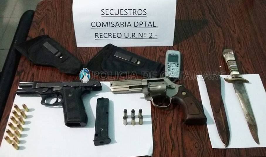 Al continuar con el procedimiento encontraron en el interior del vehículo un puñal y dos armas de fuego, (un revolver calibre 38mm de color plateado, con 6 proyectiles teflonados y una pistola marca Taurus calibre 9mm., de color negro, con 13 proyectiles).