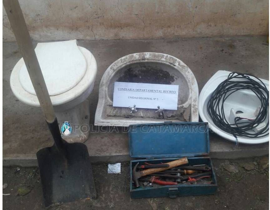Del lugar se procedió al secuestro de una caja de herramientas, una pala, varios metros de cable y un juego de sanitarios.