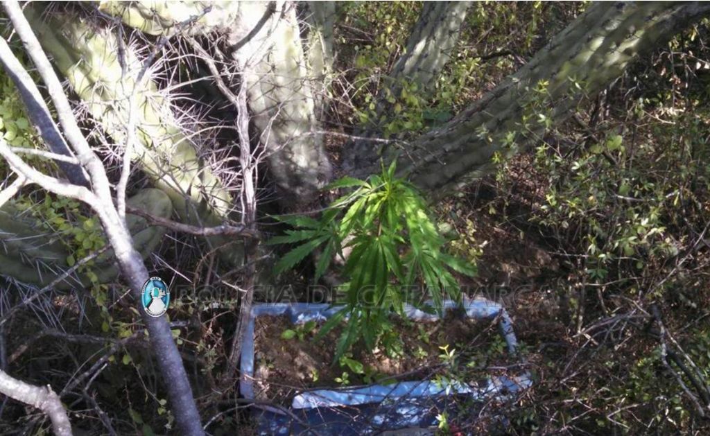 Hoy, a las 16:10, en un campo de Sierra Brava, detrás del Comedor María Teresa de Calcuta, Fray Mamerto Esquiú, efectivos policiales secuestraron cinco plantas de la variedad “Cannabis Sativa”, de aproximadamente 25 centímetros de altura.