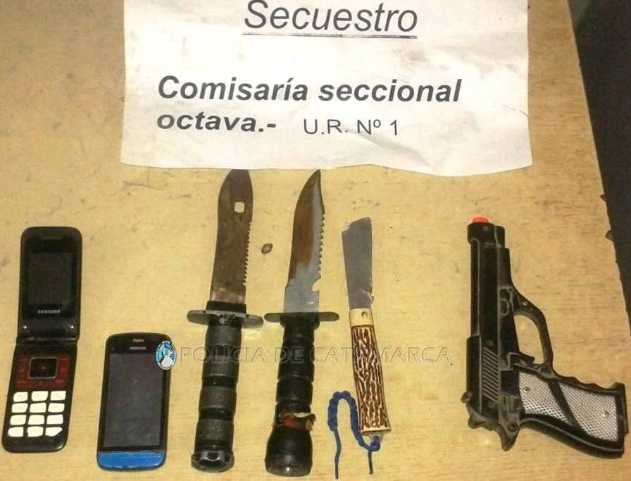 Por el hecho, se procedió al secuestro dedos motocicletas, tres cuchillos, dos celulares, una réplica de un arma de fuego 9 mm de plástico y herramientas varias.