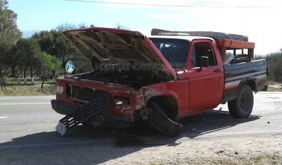 Una camioneta Ford F 100, dominio HFB-570, de color rojo en
