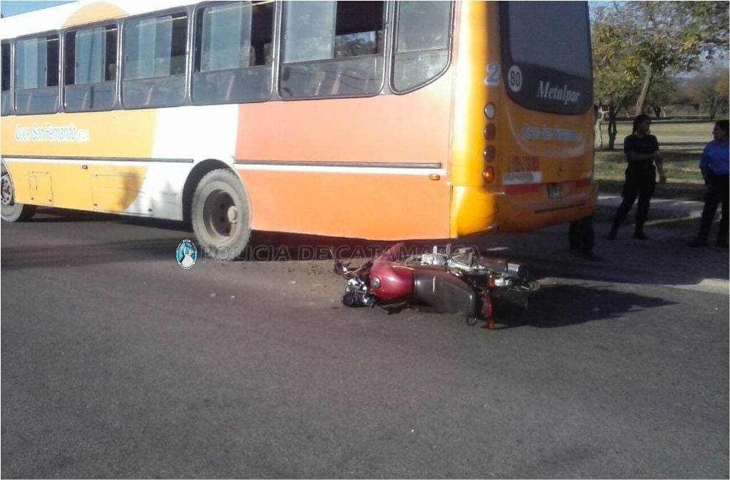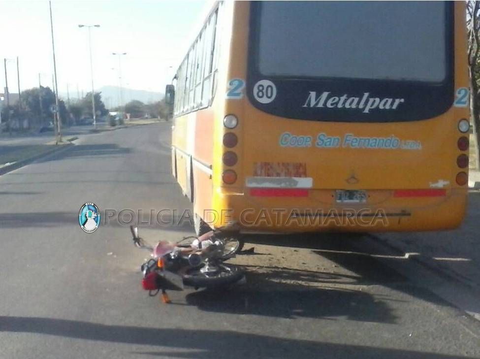 Hoy, a las 17:45, en la avenida Legisladores a la altura de la segunda bomba de agua del denominado Circuito de la Vida, una motocicleta Honda CG 150 cc., al mando de Braian Leonel Pereyra (19), colisionó contra un colectivo de la Cooperativa San Fernando, Línea 109, Interno N°2, conducido por Juárez Juan Marcelo (32)