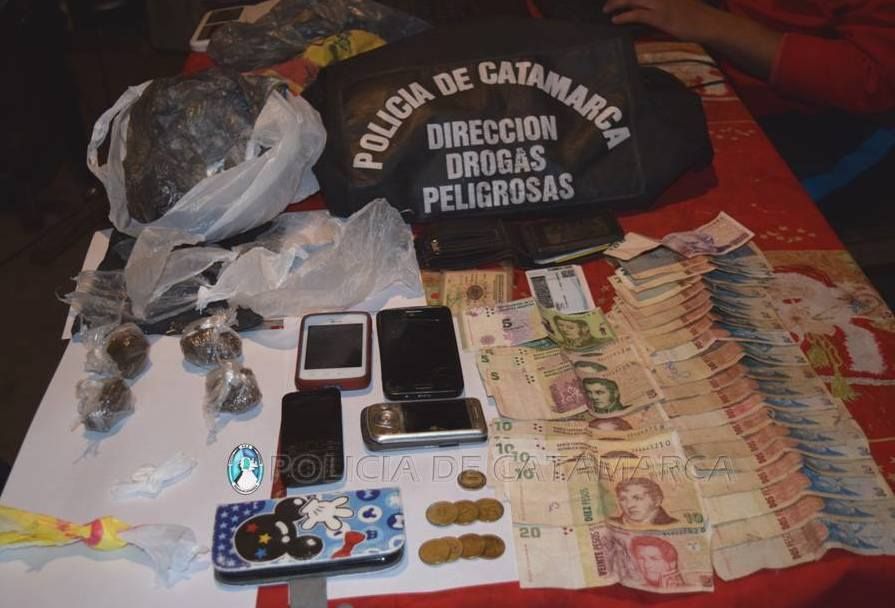 Del lugar, procedieron al secuestro de envoltorios de nylon conteniendo 100 gramos de Marihuana y 60 gramos de Cocaína. También 5 teléfonos celulares y dinero en efectivo discriminados en billetes de baja denominación.