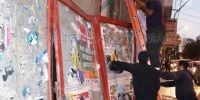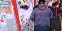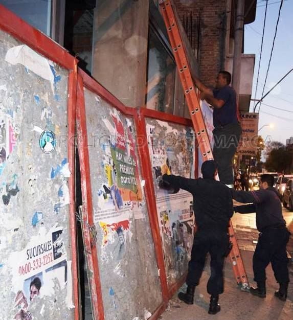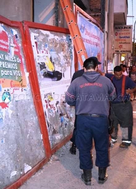 Hoy, a las 19, en la intersección de las calles Chacabuco y Salta, efectivos de la Comisaría Primera y de la Dirección de Bomberos de la Policía de la Provincia realizaron un trabajo preventivo al sacar y ajustar los paneles metálicos que resguardaban una obra en construcción.