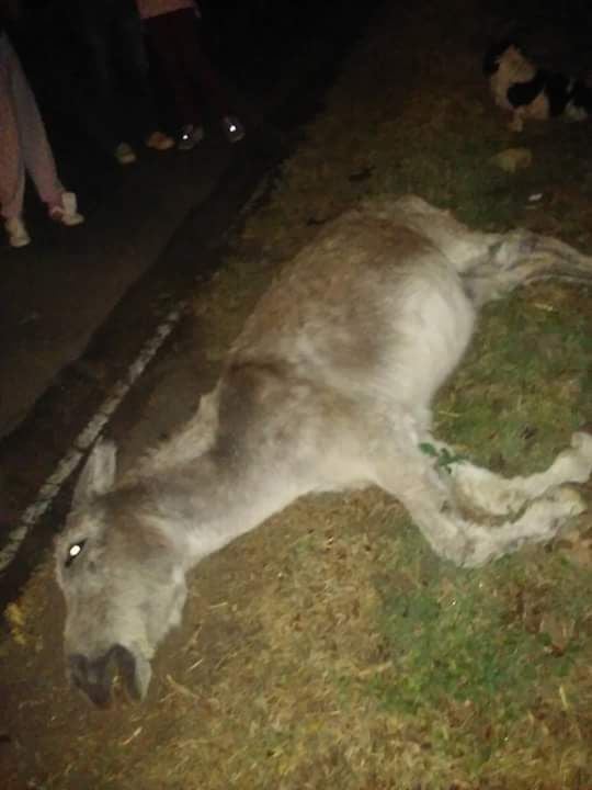 Finalmente, el animal murió por el fuerte impacto y el motociclista