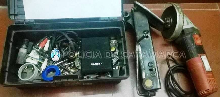 Hoy, a las 13:45, efectivos de la Comisaría 6° procedieron al arresto de un joven de apellido Varela, de 20 años, quien habría sido sorprendido en la calle Rio Salado a la altura de la peatonal 16 del barrio Libertador II, cuando intentaba vender un gato hidráulico, una amoladora Black and Decker y una caja de herramientas.