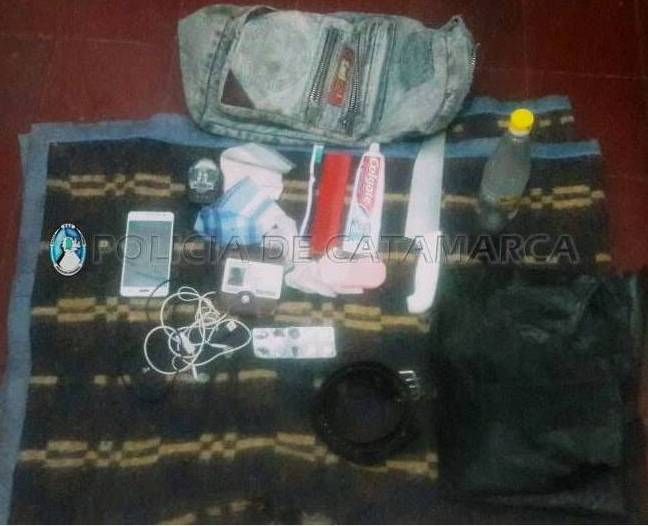 carnicera, una frazada, un nylon, de color negro y elementos de higiene.