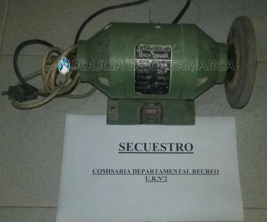 cuando sustraían una amoladora de banco marca Bench Grinder de ¾ HP de color