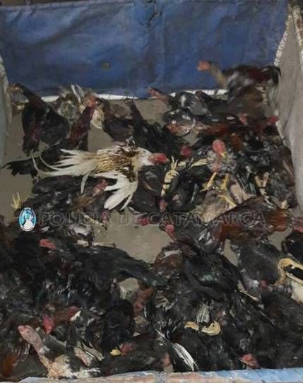 procedió al secuestro de 80 gallos de riña, una caja de plástico, una mochila