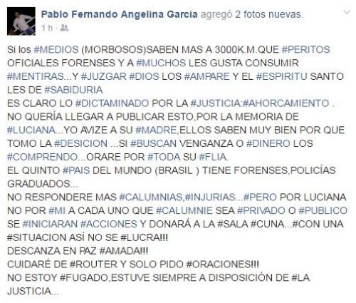 En su cuenta de Facebook, Pablo Angelina, aseguró no estar