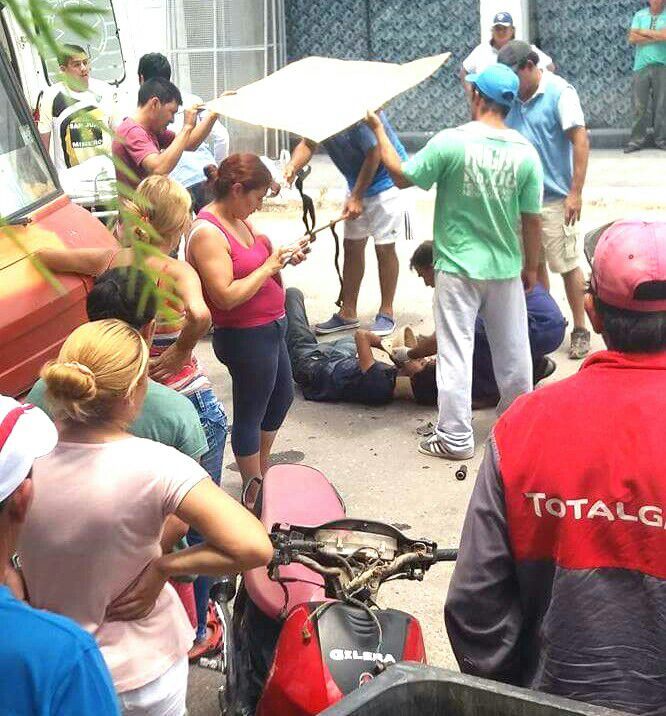 2 fotos 2 fotos sábado, 7 de enero de 2017 15:03 sábado, 7 de enero de 2017 15:03 El accidente ocurrió en Avenida San Martín esquina Moreno. Ya arribó al lugar una ambulancia y Personal del Hospital "Liborio Forte". El menor resultó con golpes y escoriaciones leves. Ya fue atendido en el Hospital.