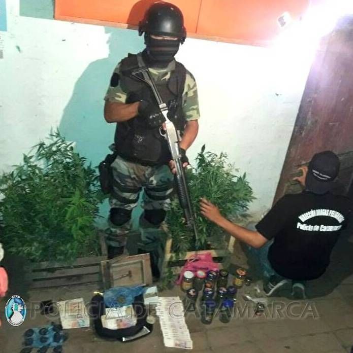 Ayer, a las 19:00, fruto de una ardua tarea investigativa llevada a cabo por efectivos de la Dirección Drogas Peligrosas conjuntamente con sus pares de la Comisaría Departamental La Merced, bajo las directivas del Juzgado Federal y con la colaboración del personal de la División de Operaciones Especiales Kuntur irrumpieron en una vivienda ubicada en la intersección de las calles Cura Vera y Facundo Aredes de la localidad de La Merced, Dpto. Paclín, propiedad de la familia Domínguez.