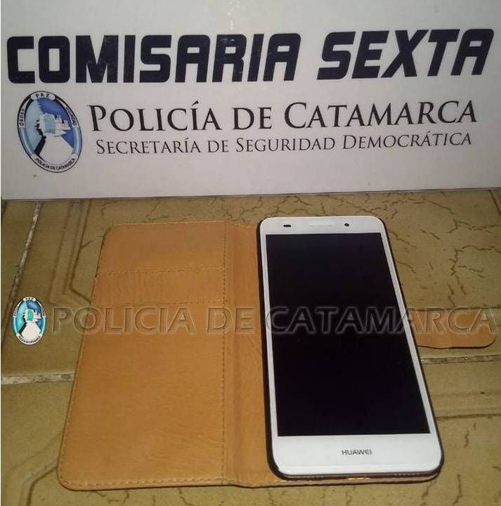 marca Huawei modelo GW, de color blanco, para luego darse la fuga a pie.