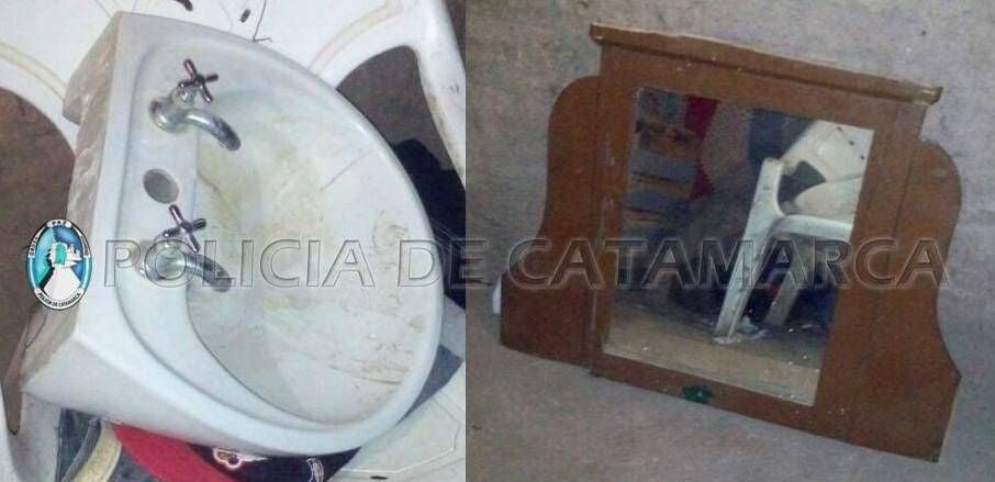 En el lugar, y bajo las directivas de Juzgado de Control de Garantías de la Quinta Circunscripción Judicial, a cargo del Dr. Marcelo Eduardo Gonzales, los Policías lograron recuperar un lavatorio de baño blanco marca Ferrum con su respectiva grifería, y un espejo con marco de madera.
