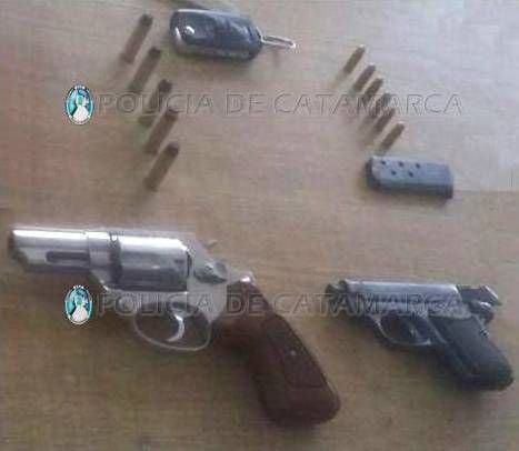 Al momento de inspeccionar el rodado, los Policías encontraron en el interior dos armas de fuego; un revolver calibre 32 y una pistola Taurus calibre 22, con seis y cinco cartuchos respectivamente, que quedaron en calidad de secuestro en virtud que esta persona carecía de la documentación correspondiente.