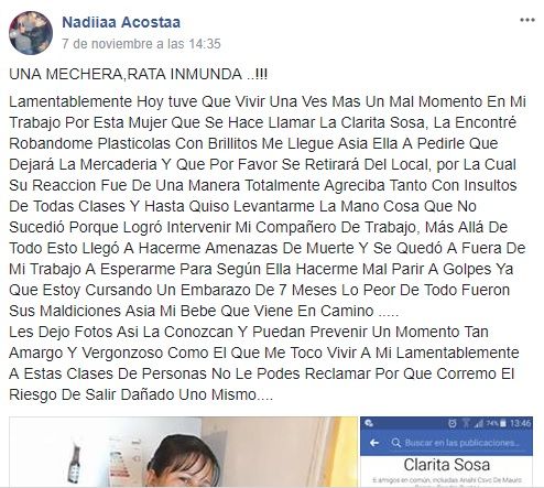 Una mujer, Nadia Acosta, escrachó a través de Facebook, a