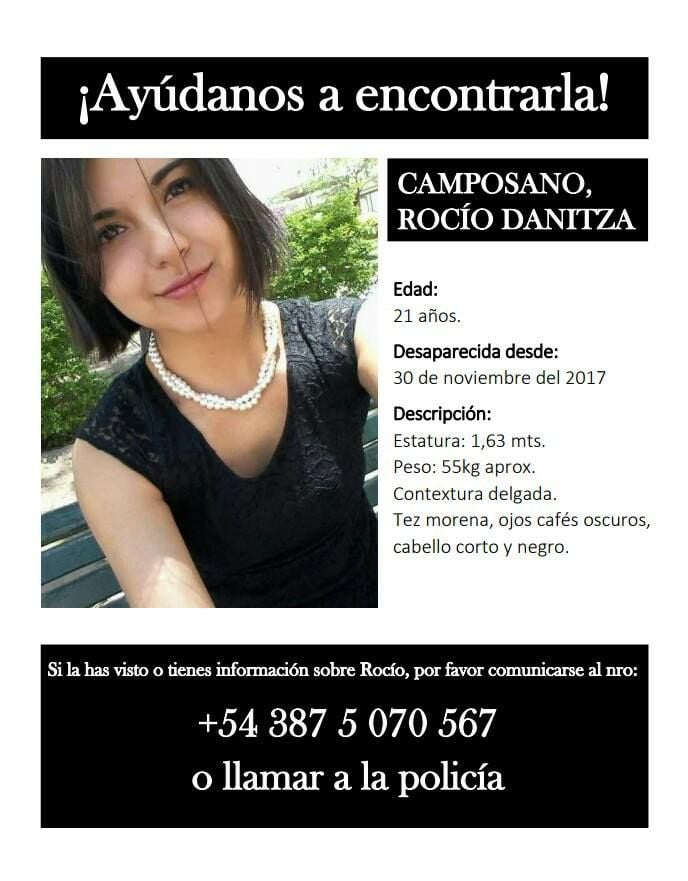 sociales para dar con el paradero de la joven oriunda del departamento Santa