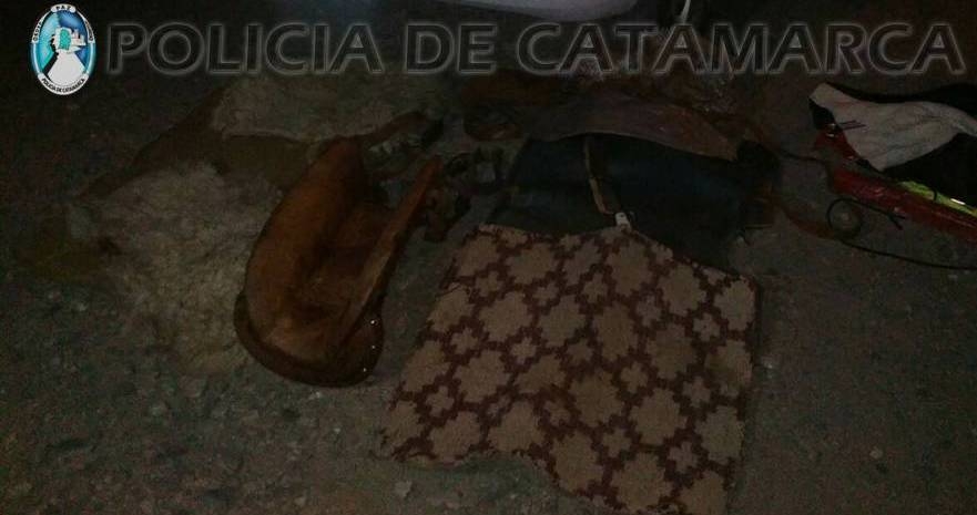Pasada la medianoche de ayer, a las 00:30, en la ruta provincial N° 5, inmediaciones al ingreso a la Localidad de Miraflores, Dpto. Capayán, efectivos de la Comisaría de Nueva Coneta procedieron a la requisa de un automóvil Renault Clío, dominio IAV-212, de color gris, y en el baúl del mismo encontraron una montura completa, de la cual el conductor, un joven de apellido González, de 20 años de edad, no pudo acreditar su legitima propiedad y procedencia, y quedó en calidad de secuestro.