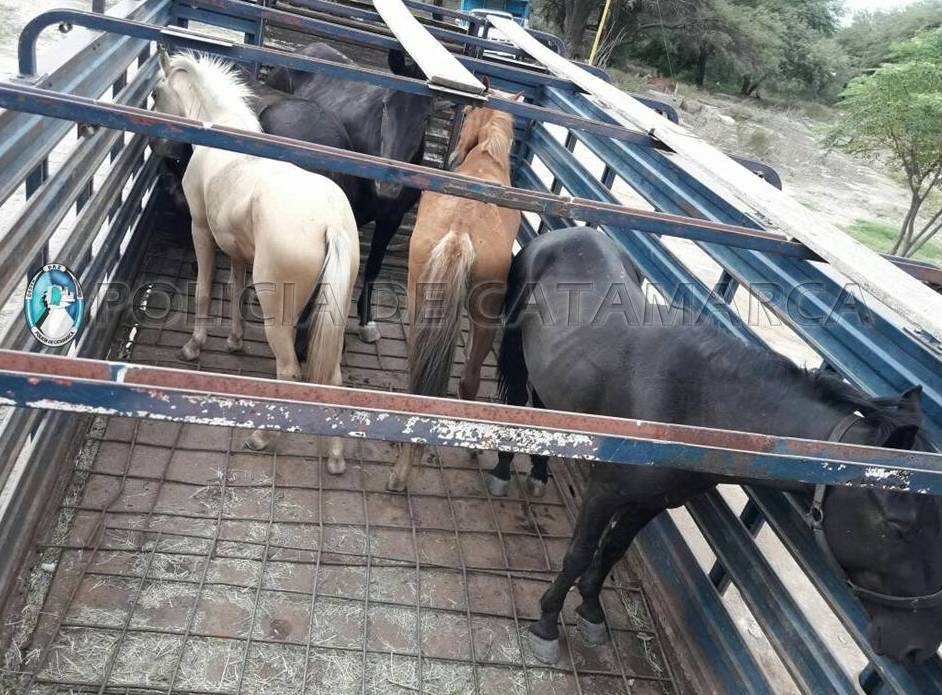 En el lugar, personal de la División Policía Montada de la Policía de la Provincia procedió al secuestro de una potranca, pelaje palomino listada, una yegua negra frontina, sin marca de fuego, una yegua pelaje tostada, sin marca de fuego, una yegua negra, un padrillo pelaje negro, sin marca de fuego, en cumplimiento de lo normado por la Ley Nº 4851/95.